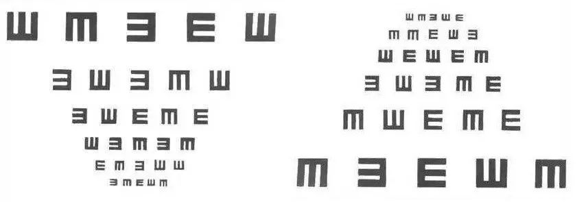 普通的视力表是上大下小,于是被测者就有一个心理预期,越往下就会越看不见。而在这项实验中,实验者将视力表的字幕设计为上小下大。被测者的心理预期被扭转过来,越往下,应该看得清楚。